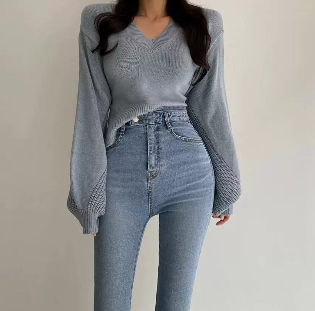 セクシーニット ニット チラ見せ リボン プチプラ ブルー くすみカラー トレンド 00069