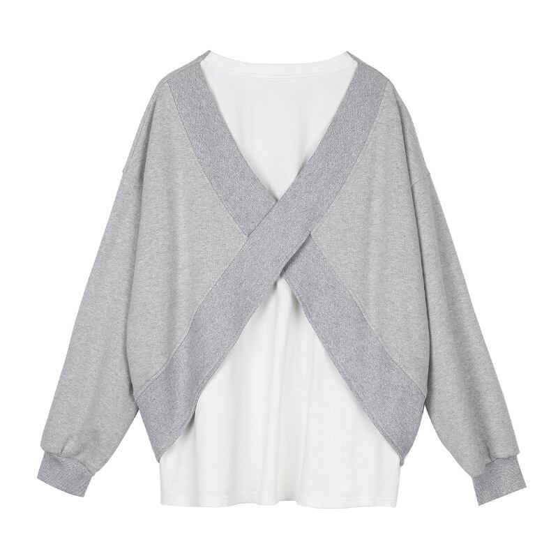 トレーナー ドッキングトレーナー レイヤード 変形 韓国 グレー 00124